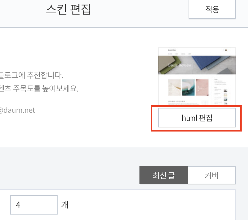 스킨편집 화면이 나타나면 'html편집'을 클릭합니다.