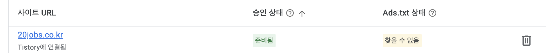 (이 블로그를 예시로 든다면 https://www.20jobs.co.kr/ads.txt를 브라우저에 입력해서 내용이 나오는지 확인)